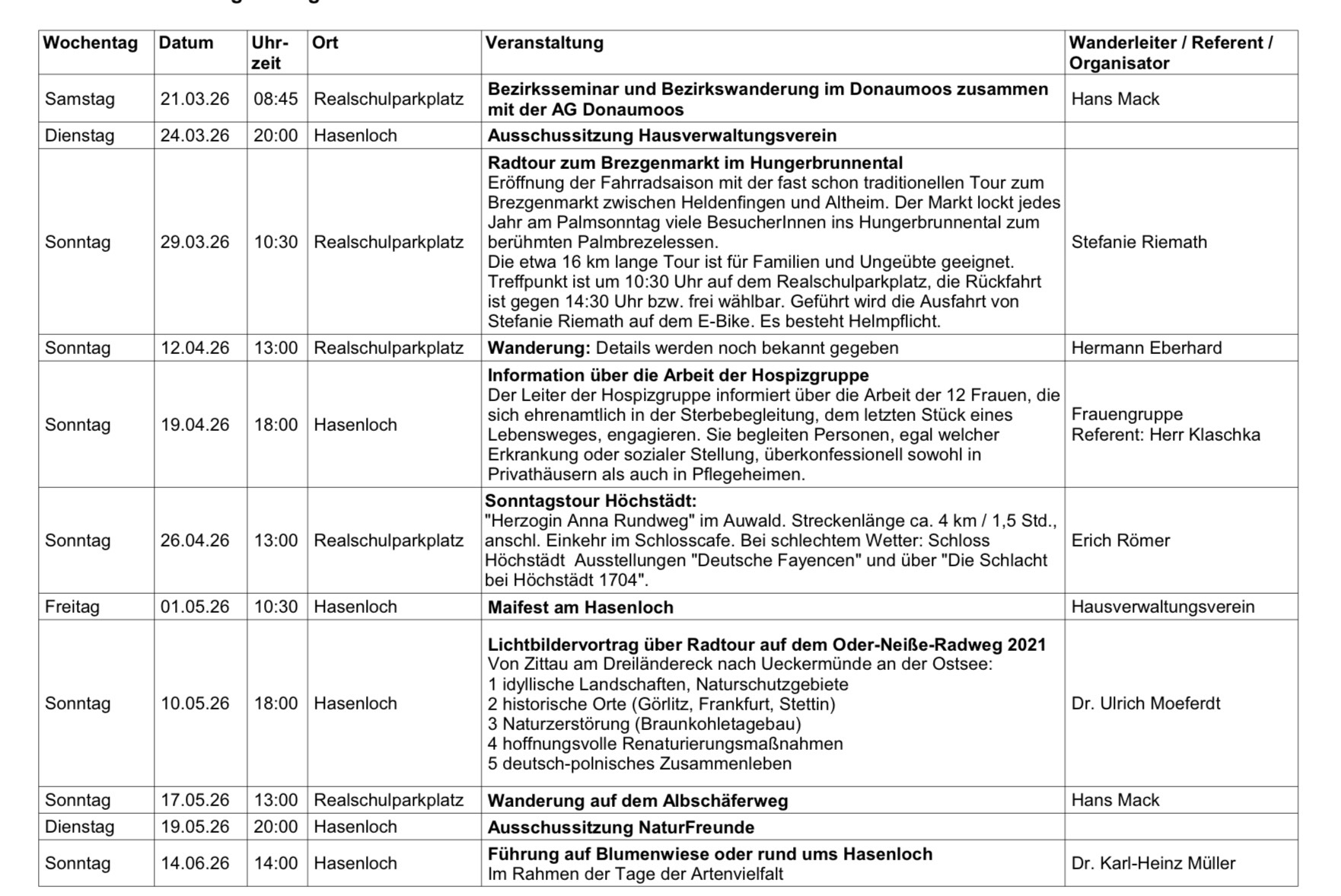 Für dieses Jahr ist kein vollständiges Jahresprogramm erstellt worden.